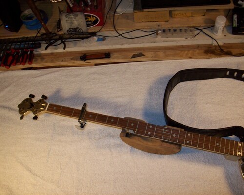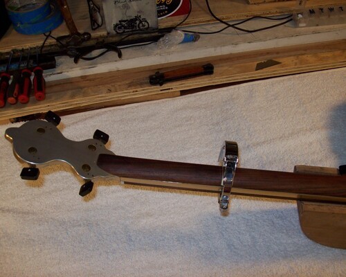 Although they came with an aluminum neck back, which as I read about them, was not great when it was cold , or hot to the hands someone crafty, made a super nice rosewood back for it. Well Done!