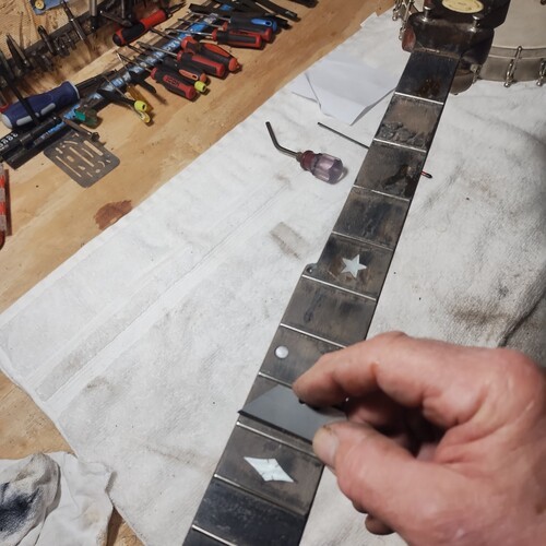 Removing glue from around fretwire.