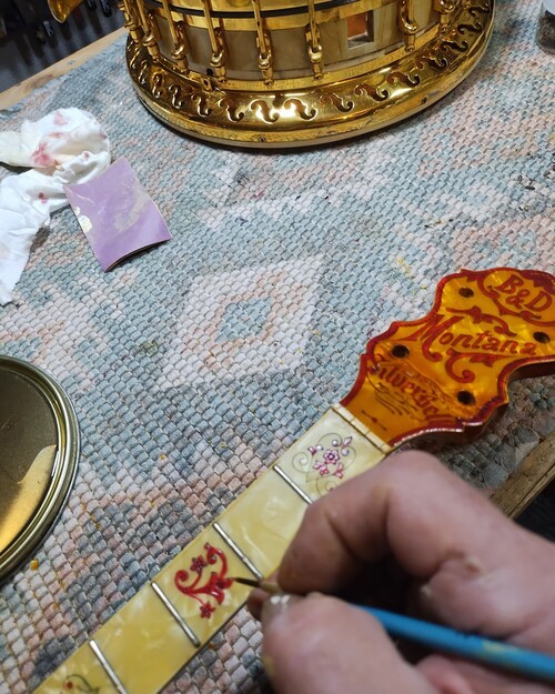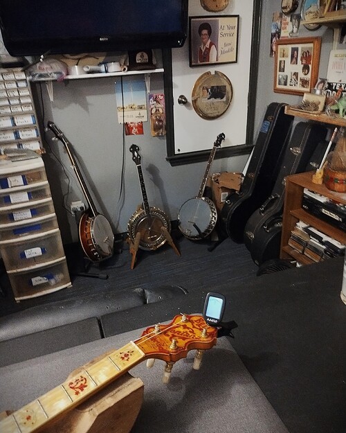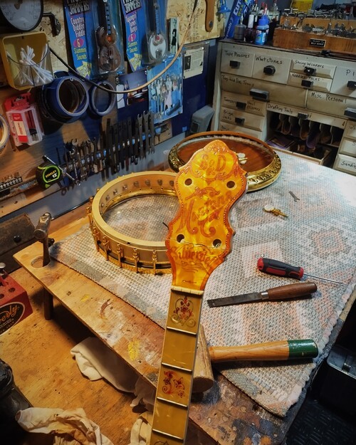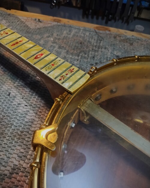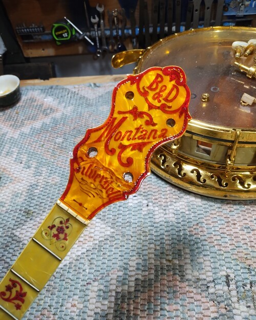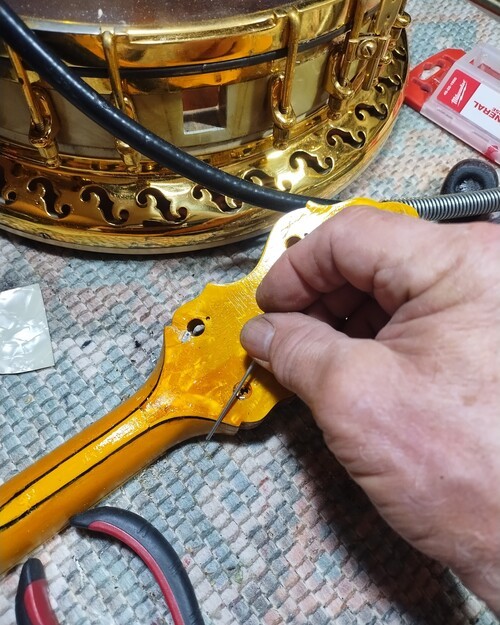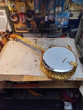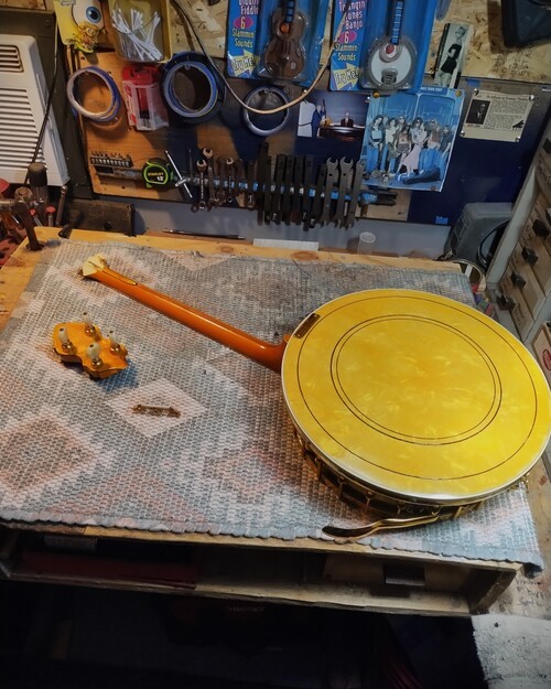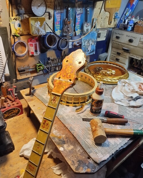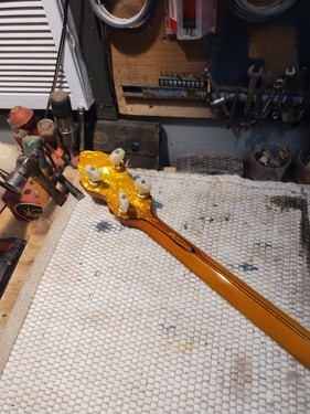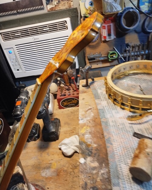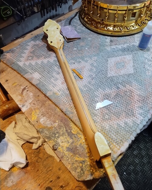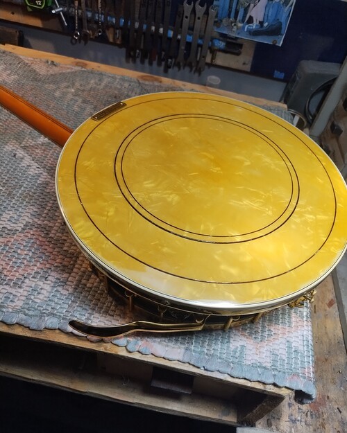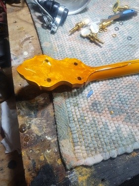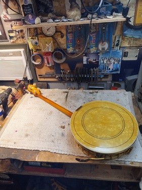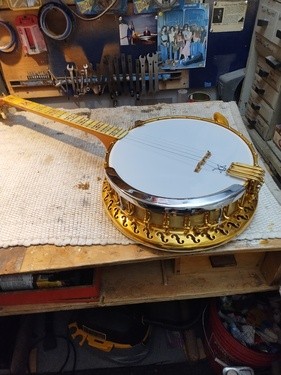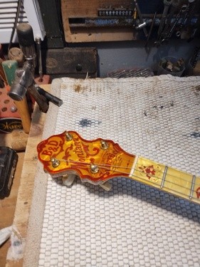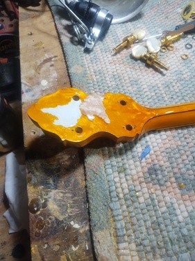 OK, after the touch up on the area I re-worked is completed and the banjo has been setup.
