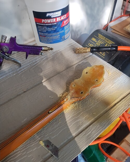 So off came the neck, the upper perloid level, leaving the white which is not affected. Took the liberty to add in a larger rebar across the break, an added insurance. So a positive (Yay) in the deal.