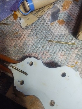 Reinforcement pins will go in at this angle, through tuner hole.