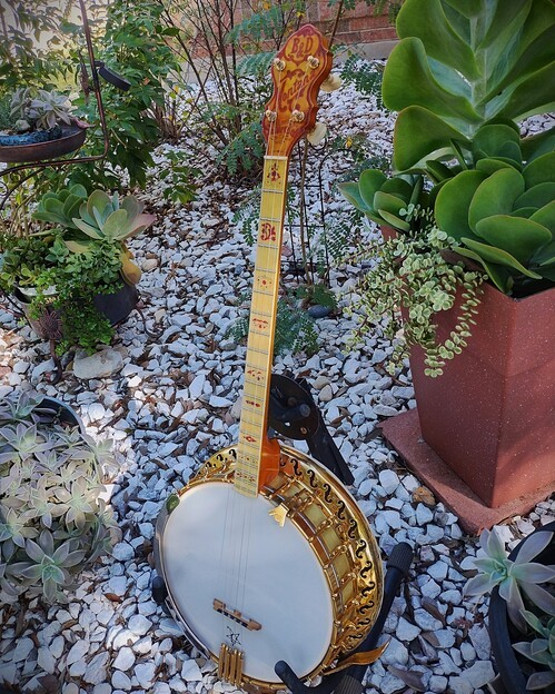 The hardware appears to be at least 90% original to the banjo or at least, correct replacement parts.