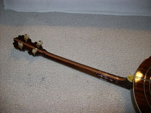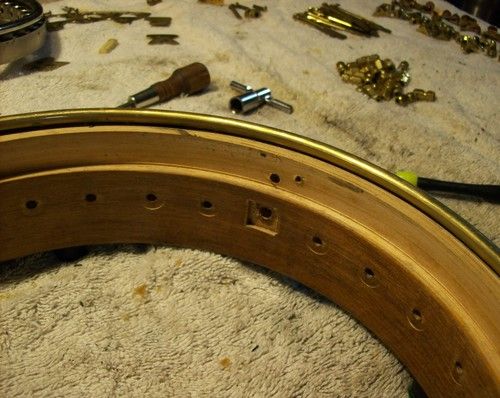 The banjo had an aftermarket mute in its life, I have seen the style, but the only vestige of it is the string post on the front of the rim and the hole in the dowel where it attached, nothing else.