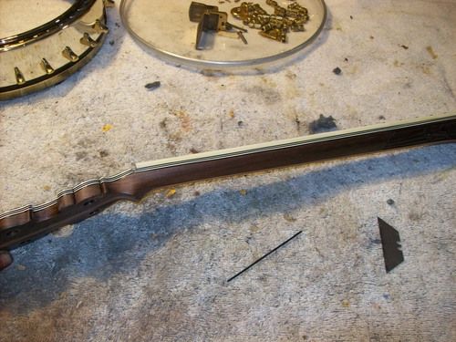 I will strip the old finish, and work with the frets that are on it, I feel they will take a light leveling and be good to go.