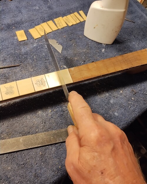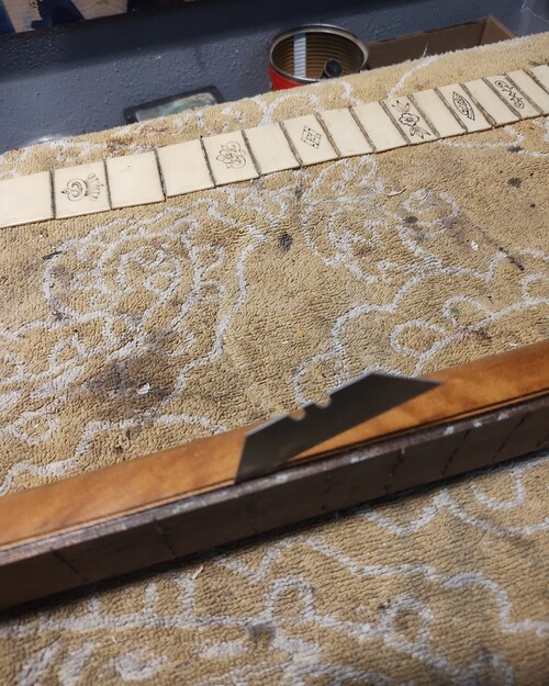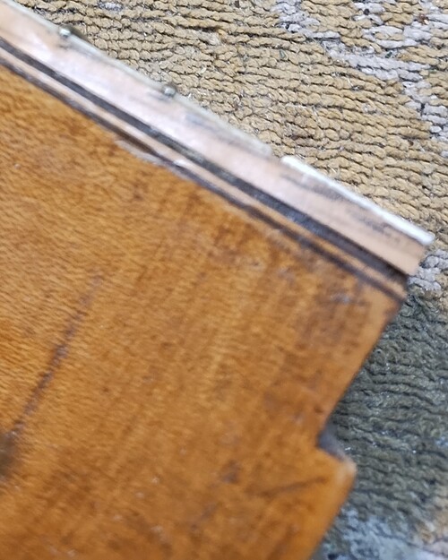 You can see glints of it as I clean slots. I will add new gold leaf after all buffing and waxing to get the original look. No finish is on these backs.