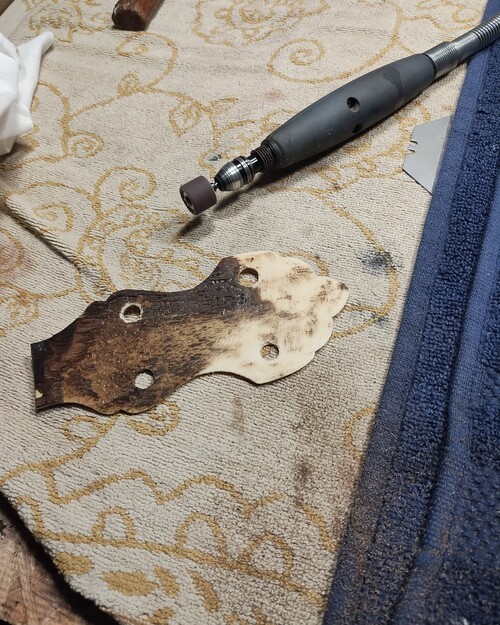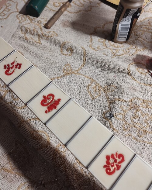 Then a light coat of an amber tint wash before clear coats to give it an "ivoroid" look.