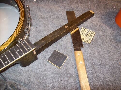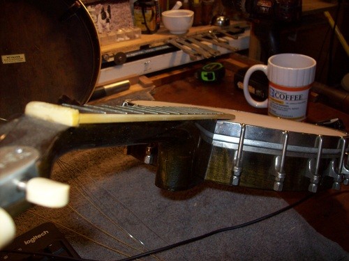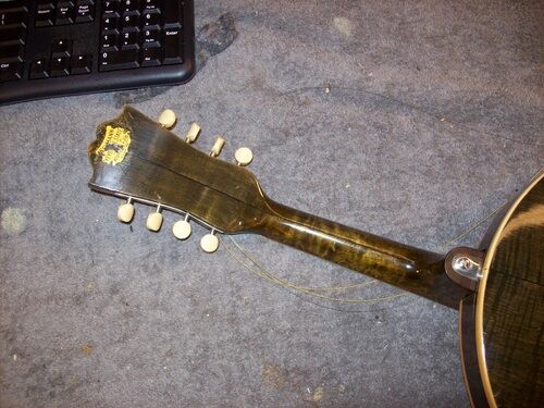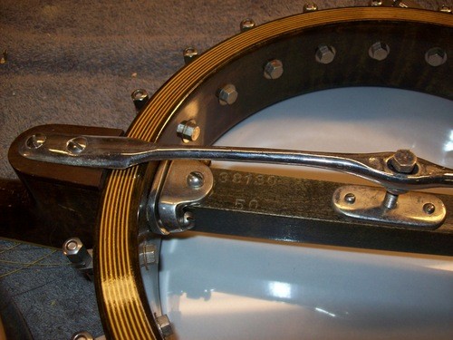 The extension dips down but does not touch the head. No one plays down there today, on banjo mandolin but this one was played to the end of the board in its day, quite impressive.
