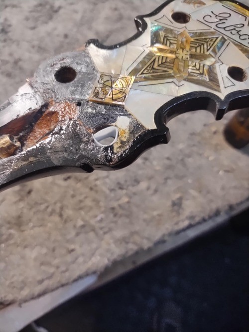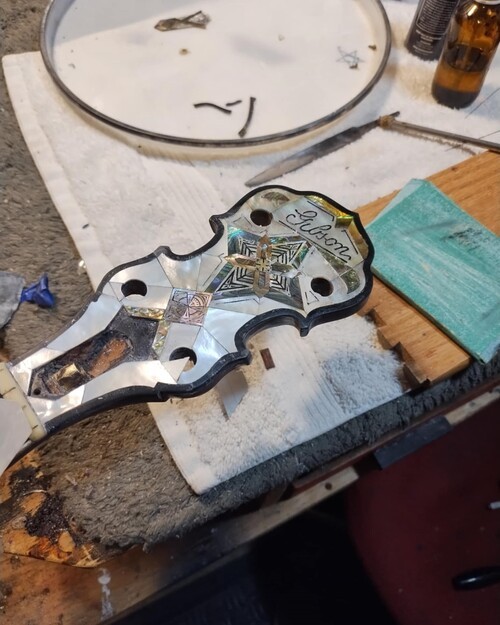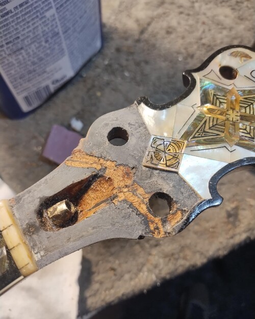 Previous repair attempt by guitar shop - failed.