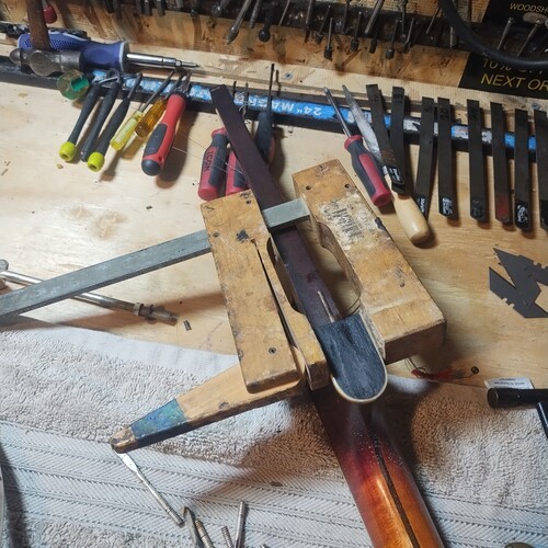Heel glued and clamped.