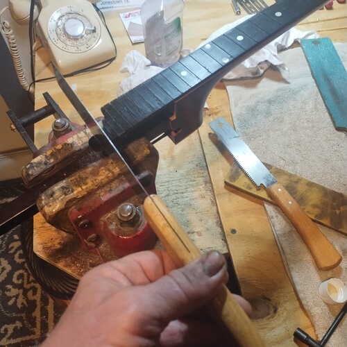 Fingerboard cleaned and slots leveled.