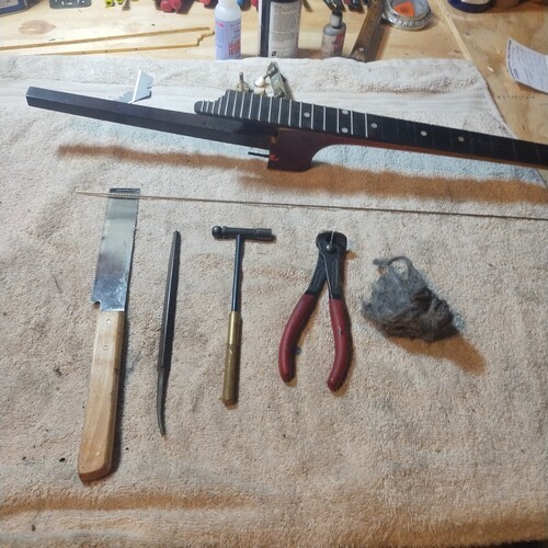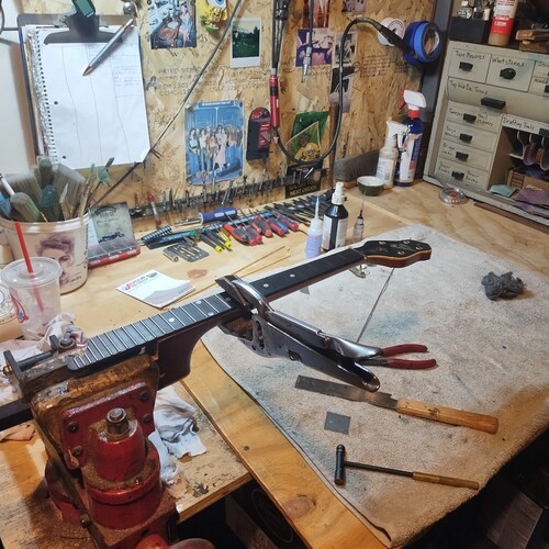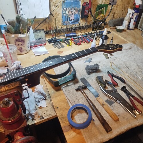 Strung to pitch, initial fret check.