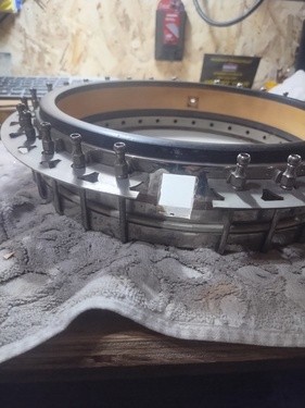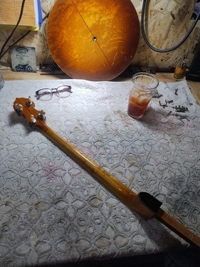 Lower than tone ring, creates "sdlap" when played down the neck.