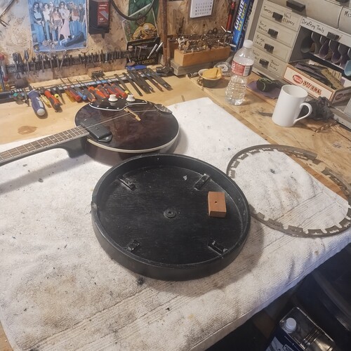 1980s import resonator, 1920s Gretsch flange. To be painted gold.