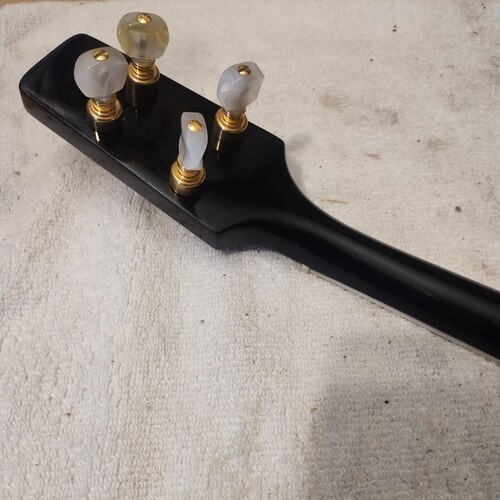 All tuned to pitch (gCEA), and playing well, no buzzes in frets or electrics.