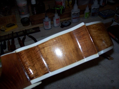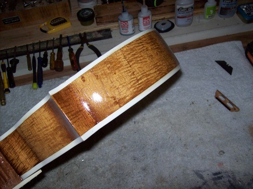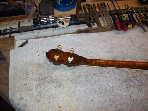 Peg head overlay has a few hairline cracks, will seal and dye before finish.