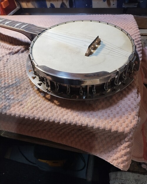 Notched tension hoop with Vegavox style tailpiece, hoop mounted