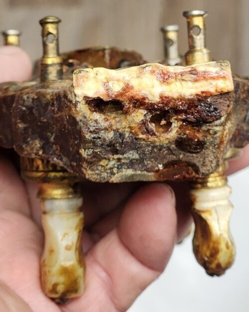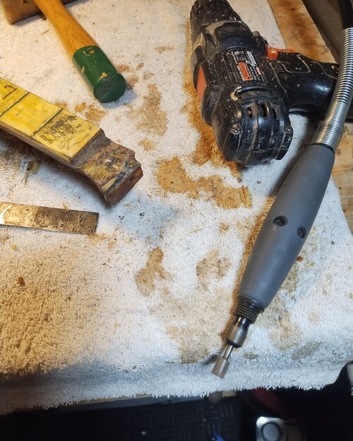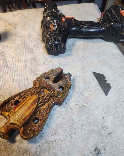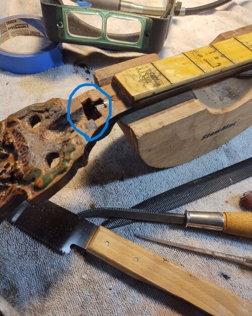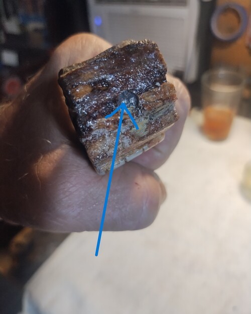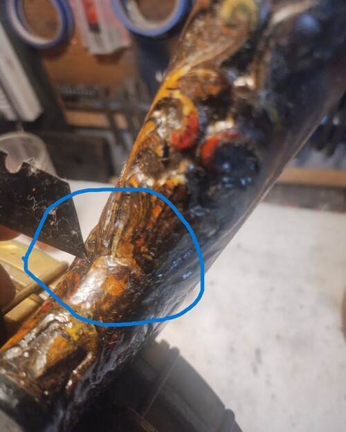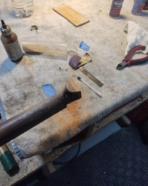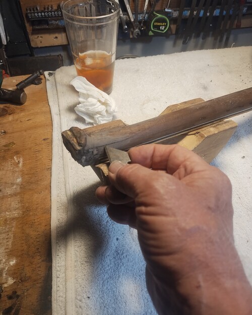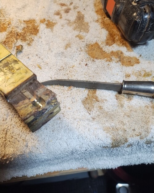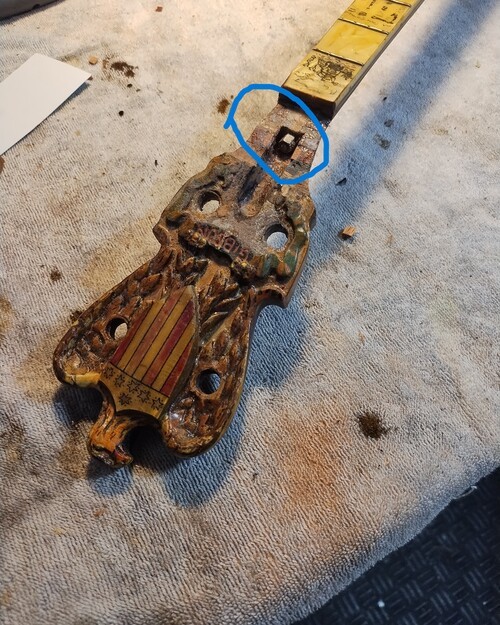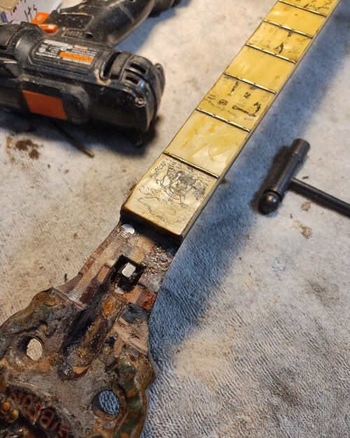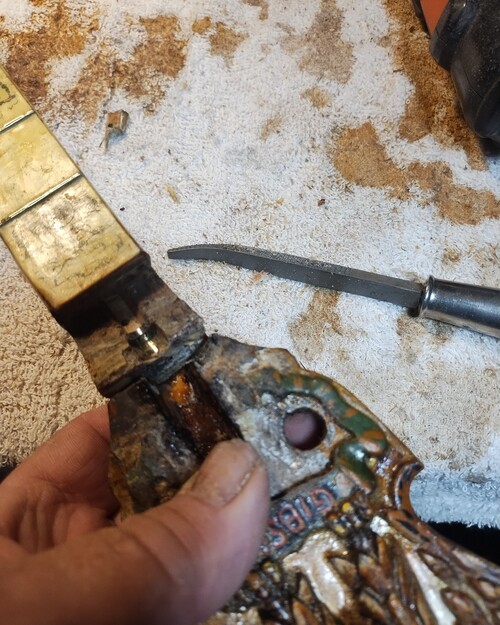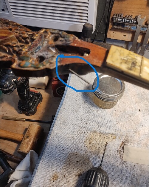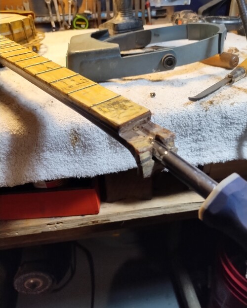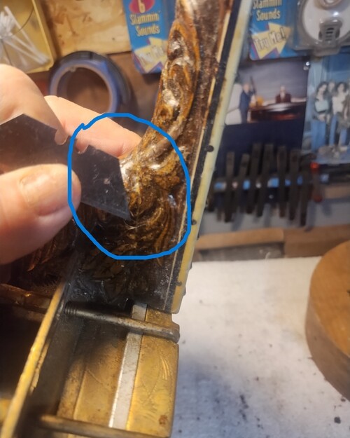 The bottom wood is the attempted repair, that was over the pin they tried.