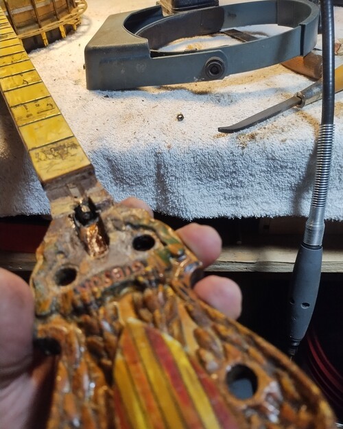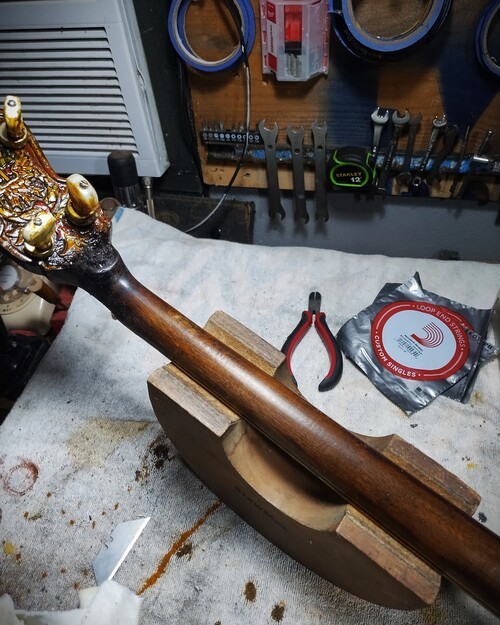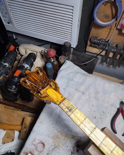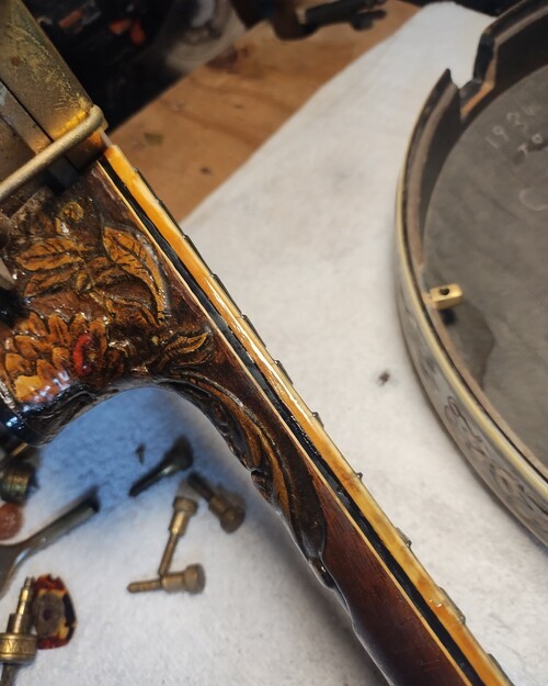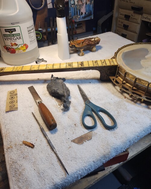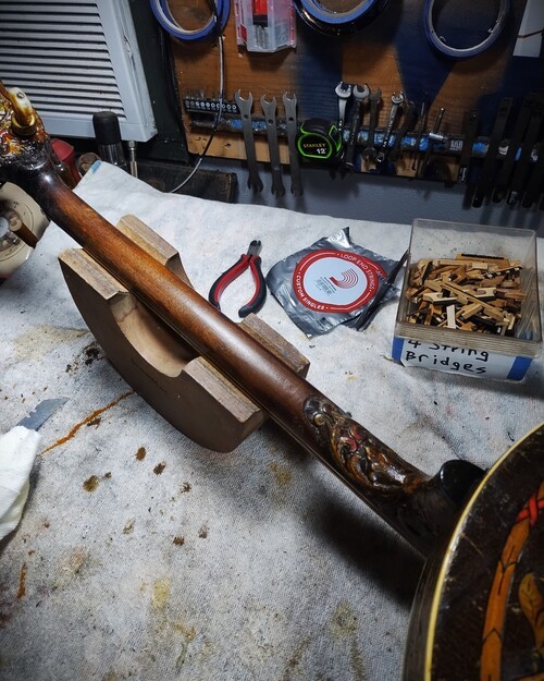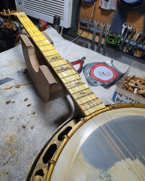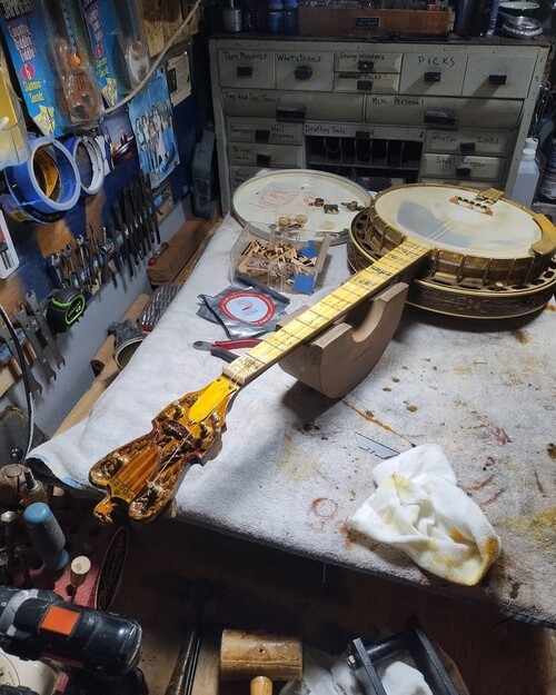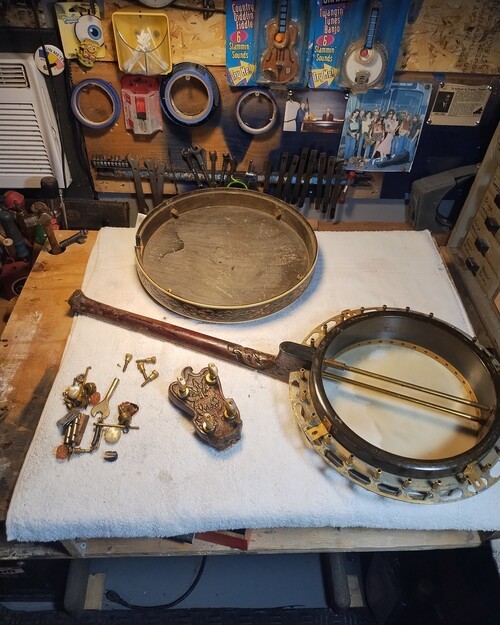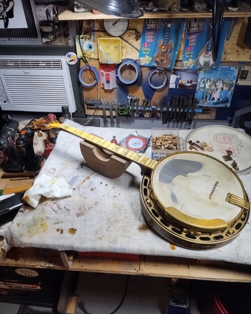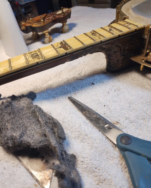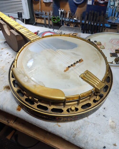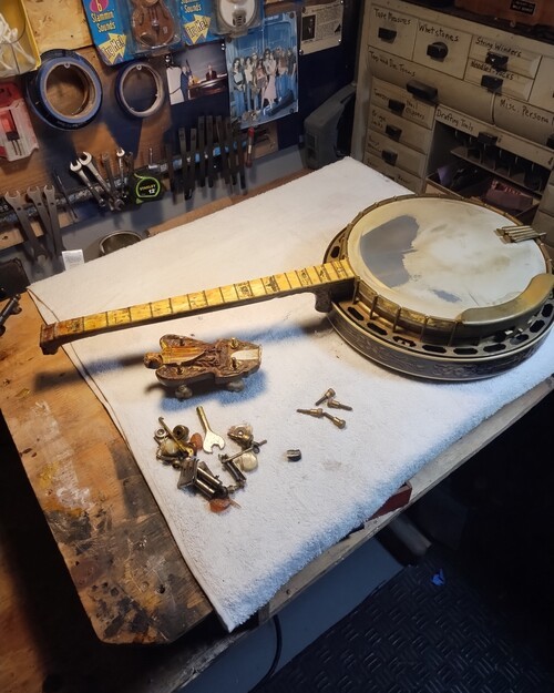 So the history remains, and Tricia's Dad's banjo can now make music again.