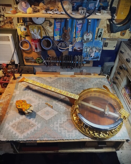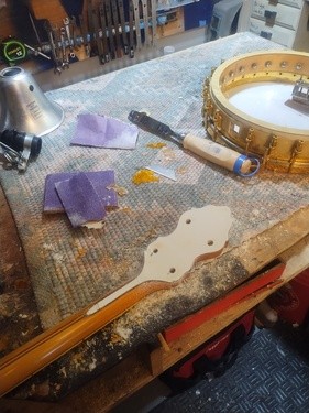 OK, after the touch up on the area I re-worked is completed and the banjo has been setup.