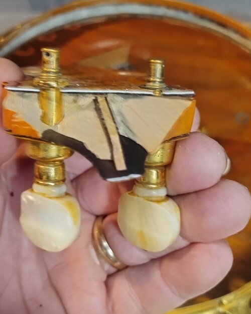 In this case on the BD Montana tenor I just "completed" (ha) I had an issue with the perloid on the peg head reverse, that was 70 percent degraded.