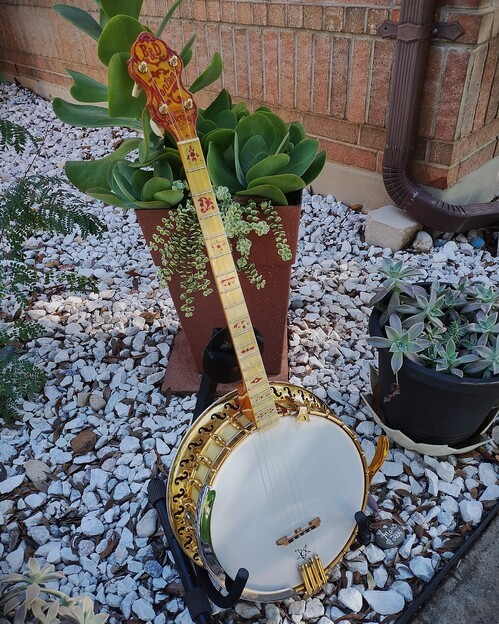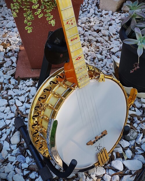The hardware appears to be at least 90% original to the banjo or at least, correct replacement parts.