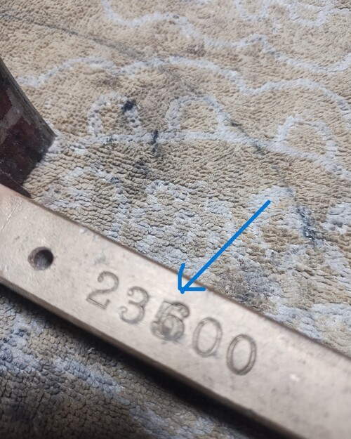 The rim is 23600 with no double stamp. When the "special "neck was made, the dowel, most likely out of a bin with no serial numbers but stamped No.1 was used, and the 3 was stamped over the 1.