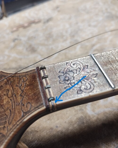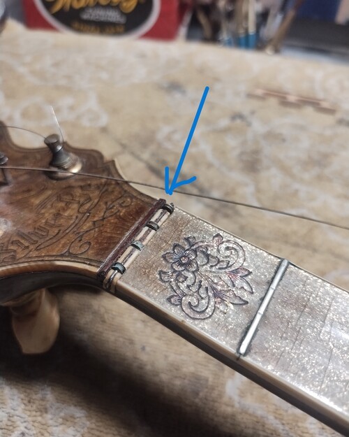 The nut, in this instrument, as well as the hand fabricated string guide post is special.