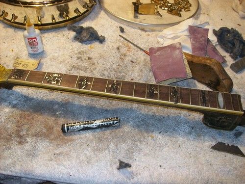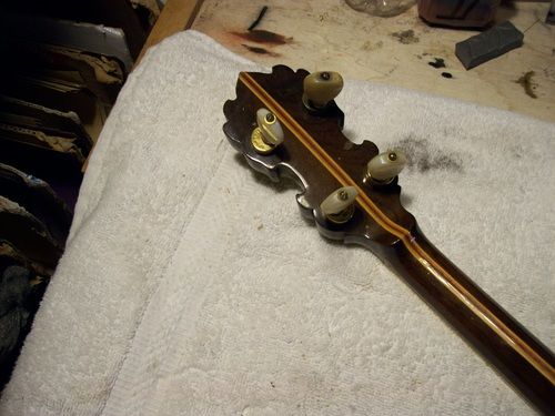 I will strip the old finish, and work with the frets that are on it, I feel they will take a light leveling and be good to go.