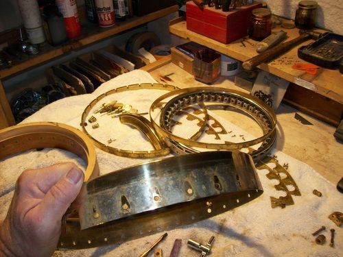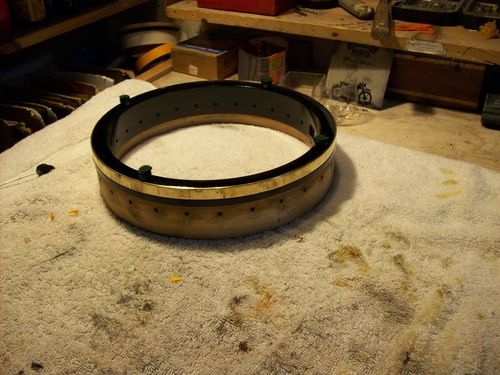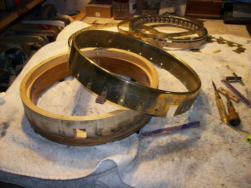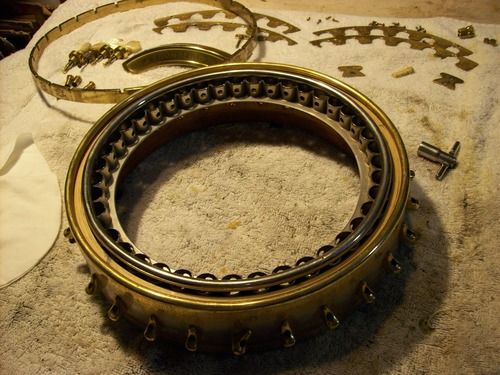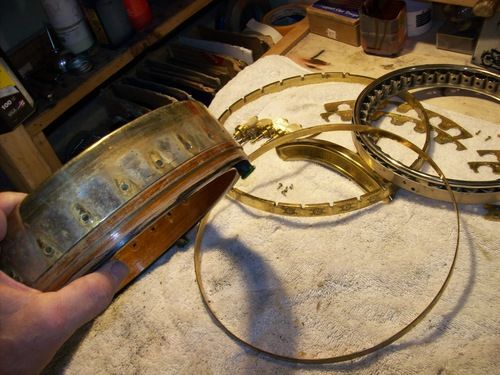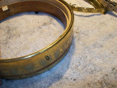 The rim skirt cleaned up very nicely to nickel, with on a few tiny spots of brassing, the gold shoes look excellent on it