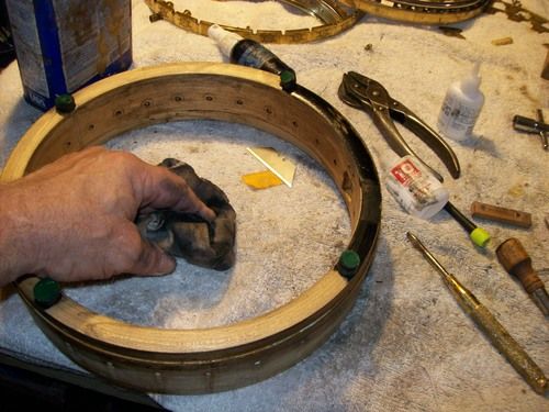 I will seal loose laminates after stripping and dye the top of the rim black, so it "pops" when the clear head is on it.
