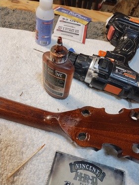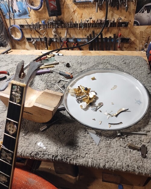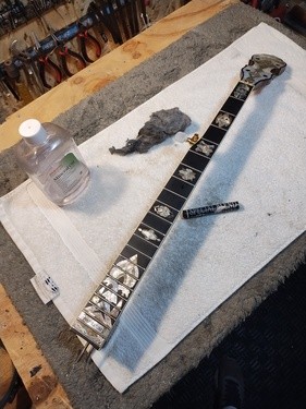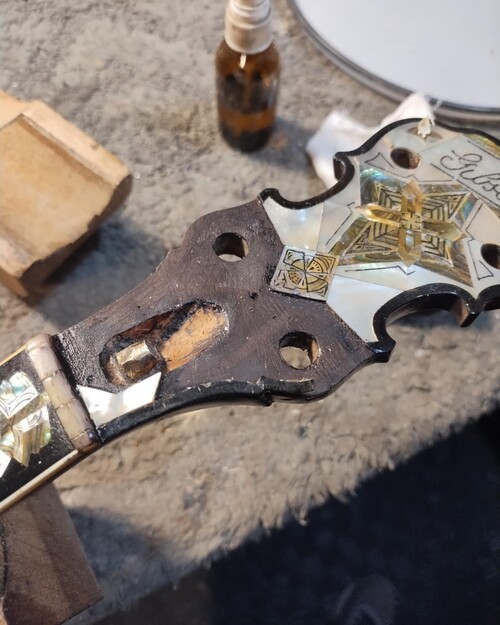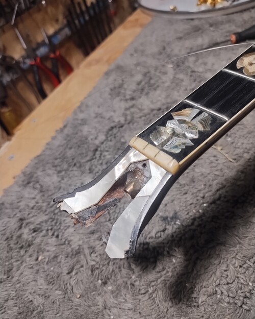 Previous repair attempt by guitar shop - failed.