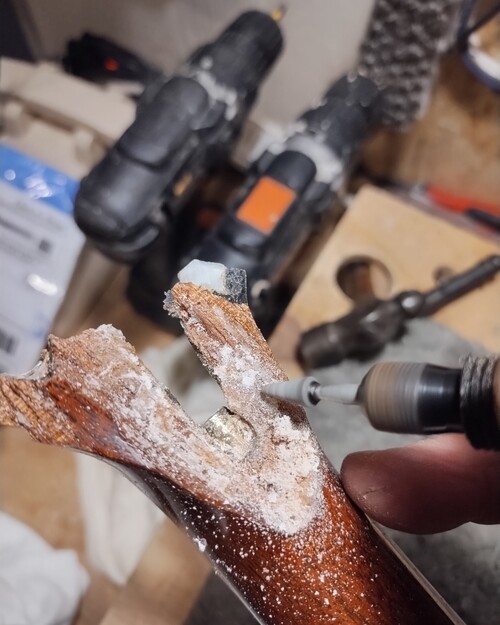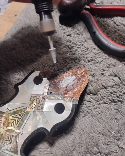 Teflon dam as I fill a small void in peg hole.