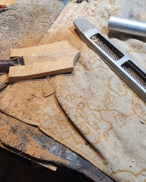 Earwood from blank removed, adding pieces.