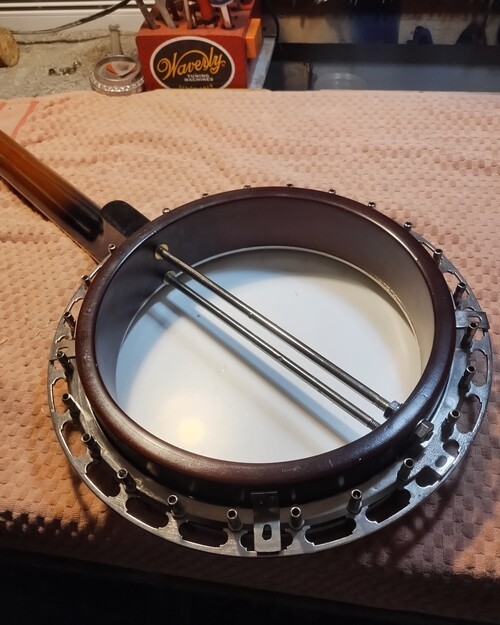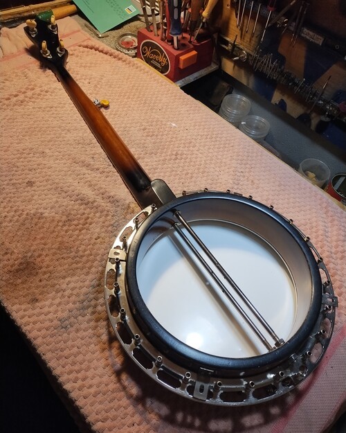 It was never on a banjo, cut for one piece Gibson flange.