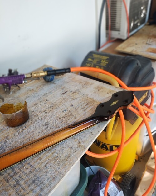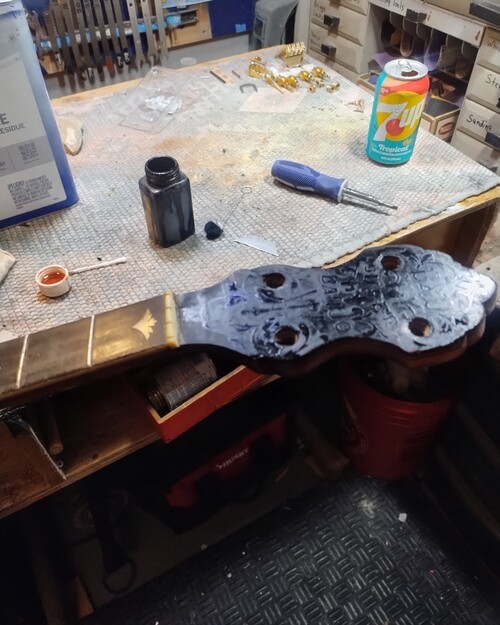 Filled, not to repair bad peg hole drill-outs.