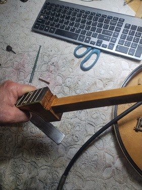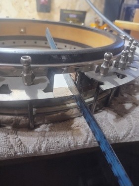 Lower than tone ring, creates "sdlap" when played down the neck.