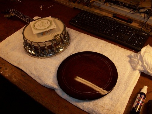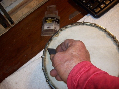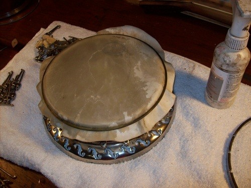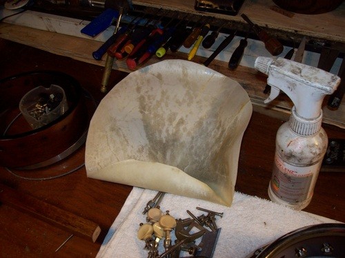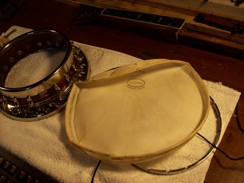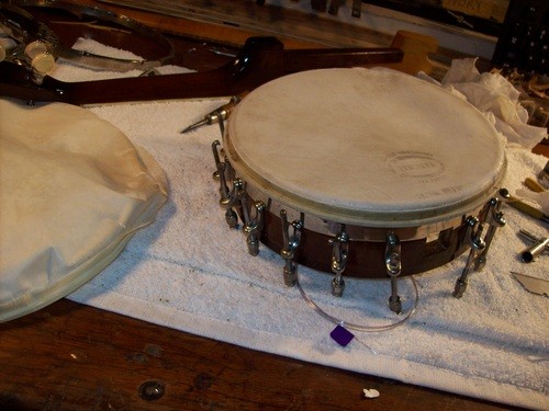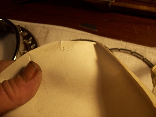 Decided that I did not like the tone this hide allowed, I am going to use a thicker Joe Rogers "Union Warranted"vintage hide.