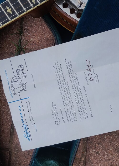Paperwork inside from previous owner who after writing to Ludwig, recieved this response.