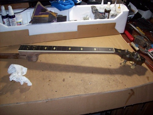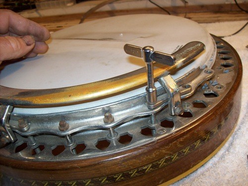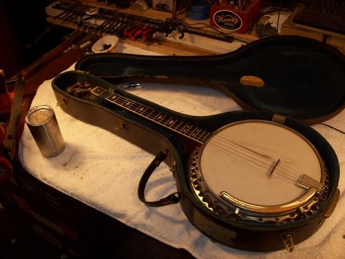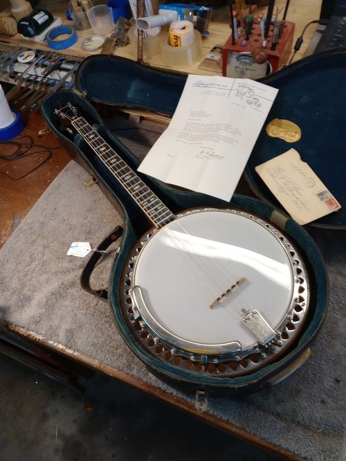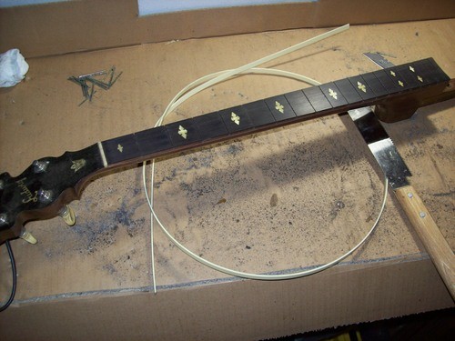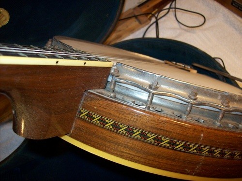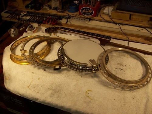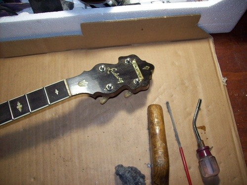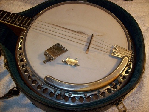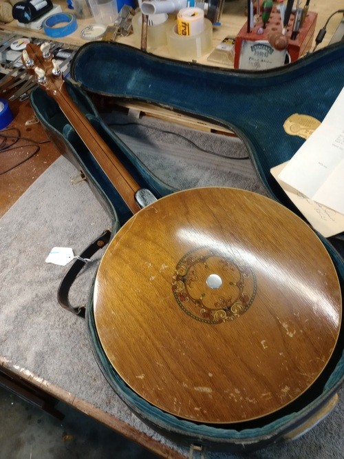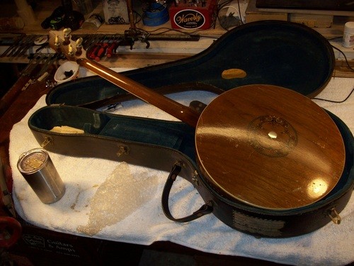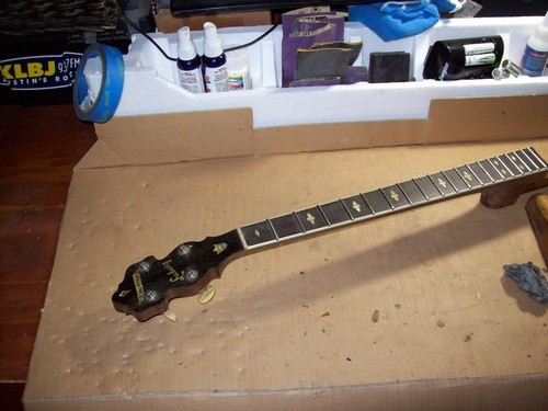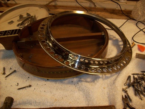 I will cannibalize a "Castle" plectrum for a brass hoop and do a re-fret, clean -up, setup and in the process show some differences in other models with parts I have in stock.