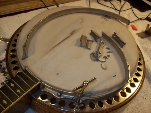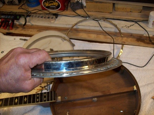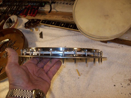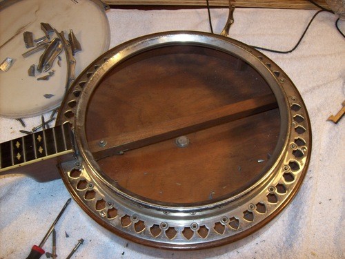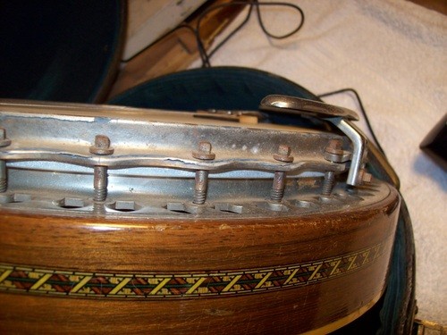 The letter states that the entire assembly was brass, but this is only an error due to the year of this banjo vs the later Kingston's that had a brass hoop.