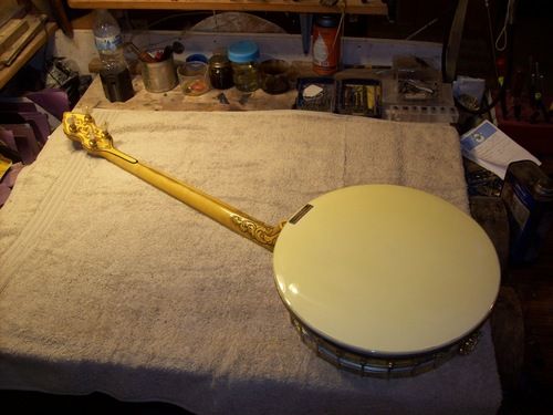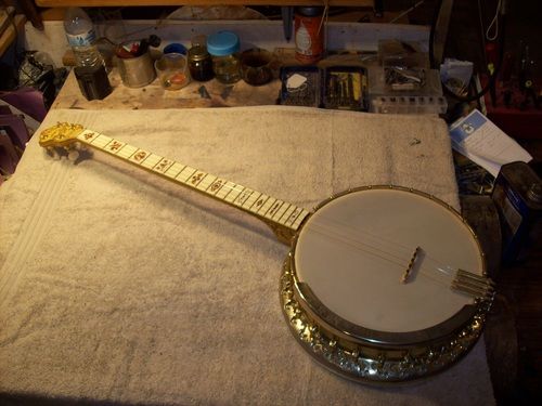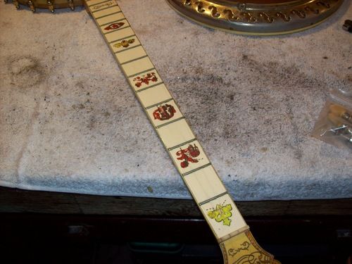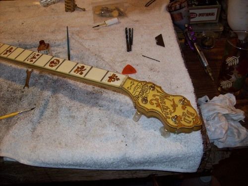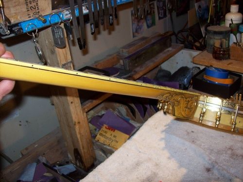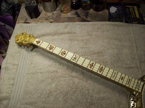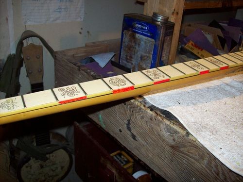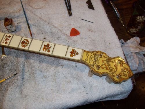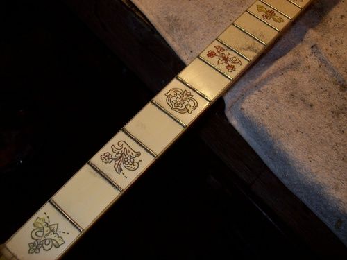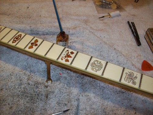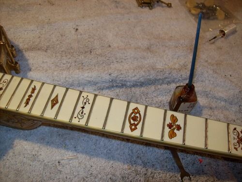 The fingerboard was in good condition, but needed some off-color paint removed from markers.