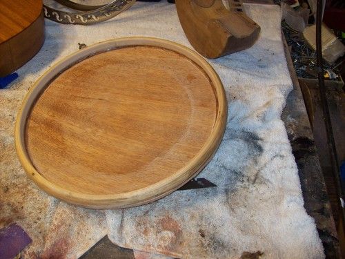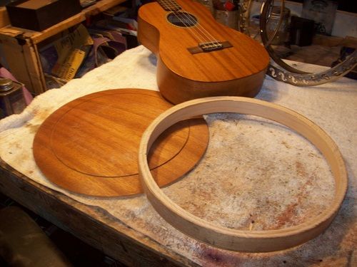 So, I took a mahogany back out of a Recording King Resonator, added binding and concentric ring.