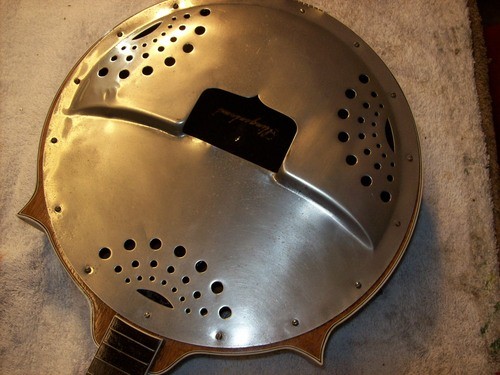 Strings touch cover plate for resonance and it sounds like a resonator guitar.