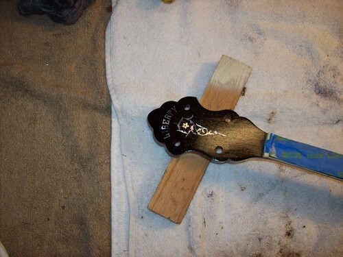 Peg head overlay has a few hairline cracks, will seal and dye before finish.