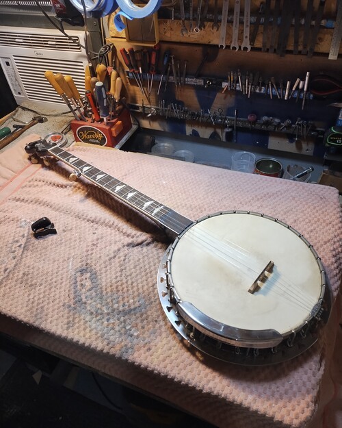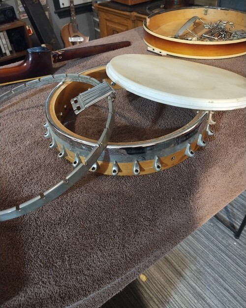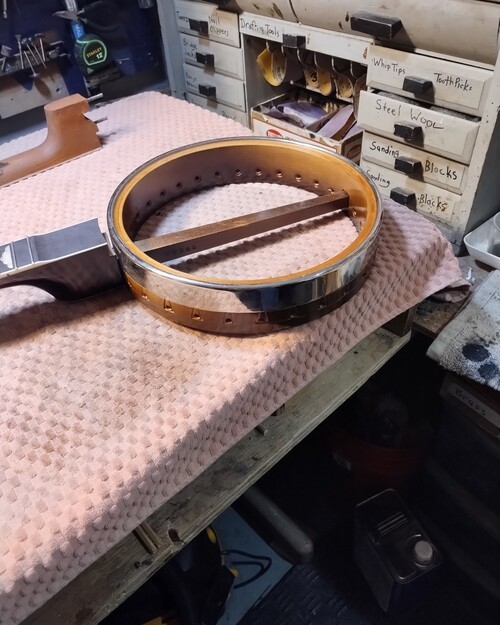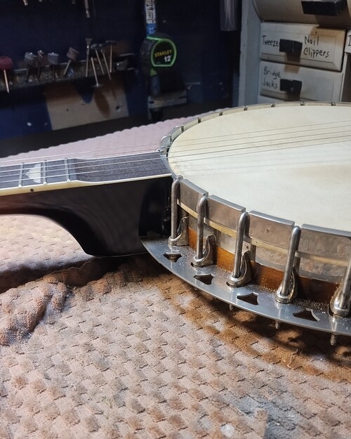 Notched tension hoop with Vegavox style tailpiece, hoop mounted