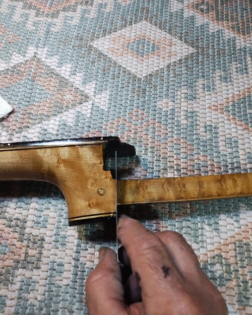 Sawing out the slots for modern wire, compression fretting.