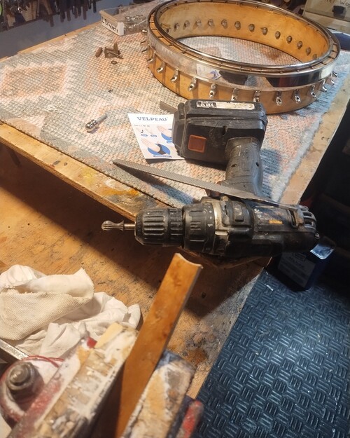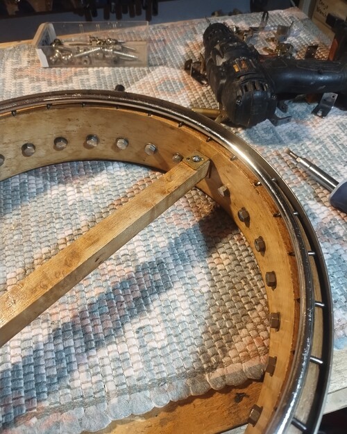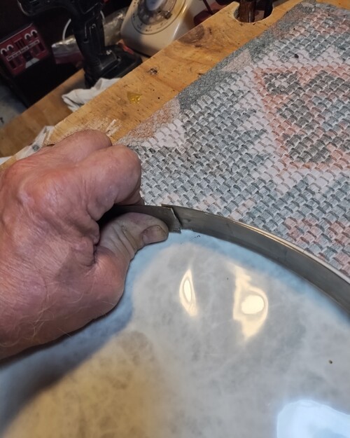 I did have to remove some of the arch ring stanchions to relieve the pressure on the top of the rim skirt as they wanted to flare it out to 14/-1/16" again, by design. There are still plenty supporting the arch ring and this is a synthetic head, no need for all of that additional support.
