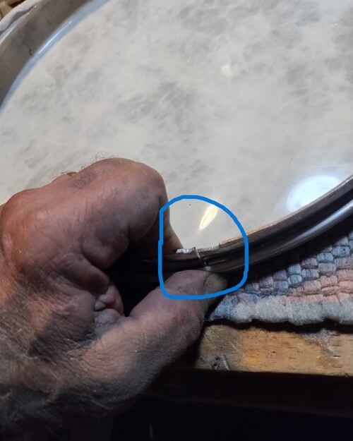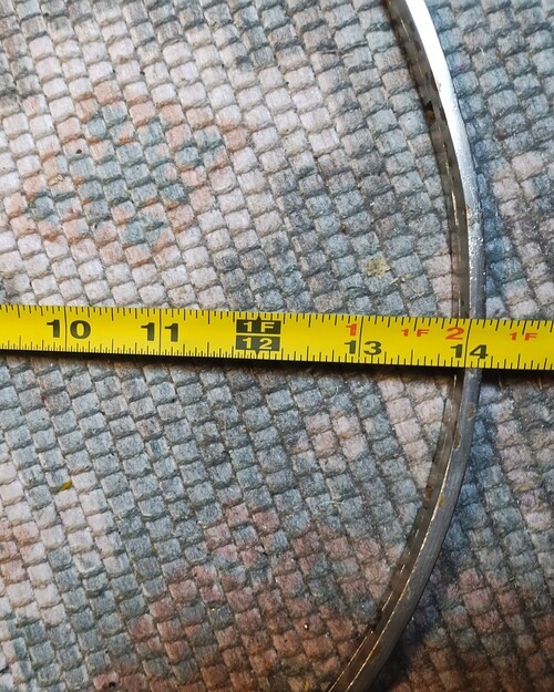 This created a serious issue as the rim's outside rim skirt is a full 14 and maybe 1/64" more so it would not get past the 14" stretcher band by a 1/32" before it started into the taper on the top of the head.