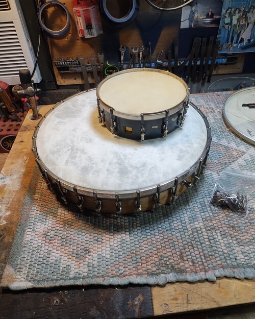 The 14" REMO Fiberskyn heads came in today from Smakula and I ran into some problems.