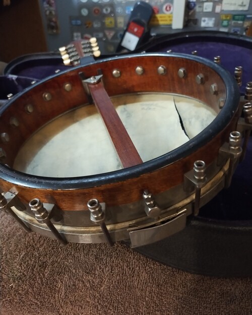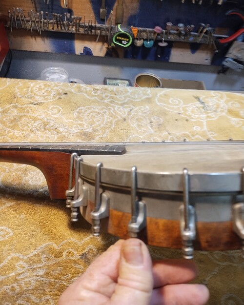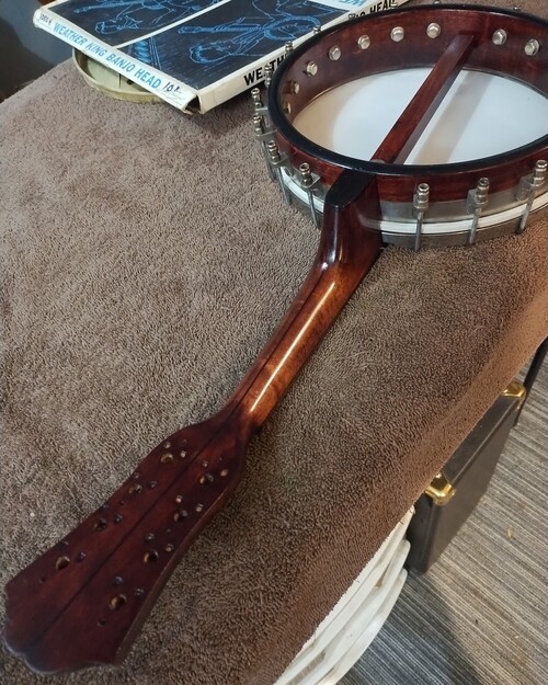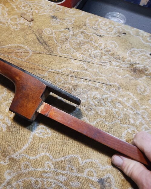 Fingerboard on head, dowel has let go.